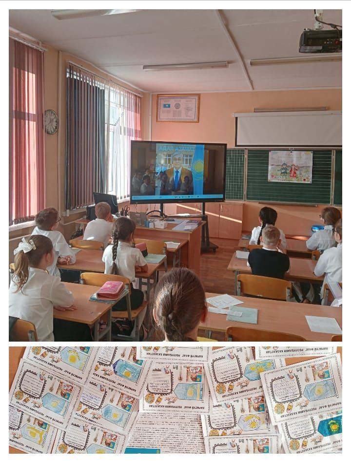 в 4"В" классе в рамках единой программы воспитания "Адал азамат" ко Дню Республики провели классный час, посвященный авторам государственных символов Казахстана. Учащиеся вспомни…