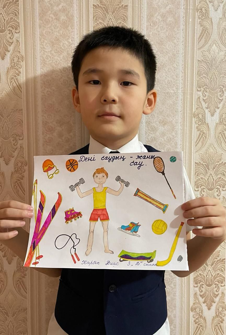 “Дені саудың -жаны сау” апталығы бойынша 2”Ә” сынып оқушыларымен сурет байқауы өткізілді. Мақсаты:денсаулық адам баласының азбас қазынасы, асқан байлығы, өмірінің тірегі екен…