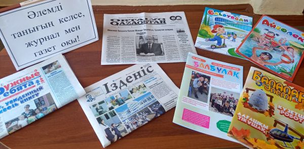 Мектеп кітапханасының қызметкерлері жас оқырмандарға қыркүйекте алған балаларға арналған Қазақстанның газет-журналдарын…