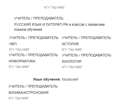 В КГУ ОШ №85 требуются следующие учителя/преподаватели