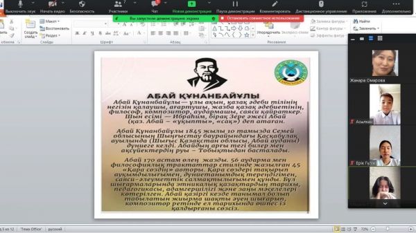 10 тамыз –Абай күні. 10.08.2022ж. 7 «Д» сыныбында «Абай дана –Абай дара қазақта» тақырыбында онлайн сабақ болды.