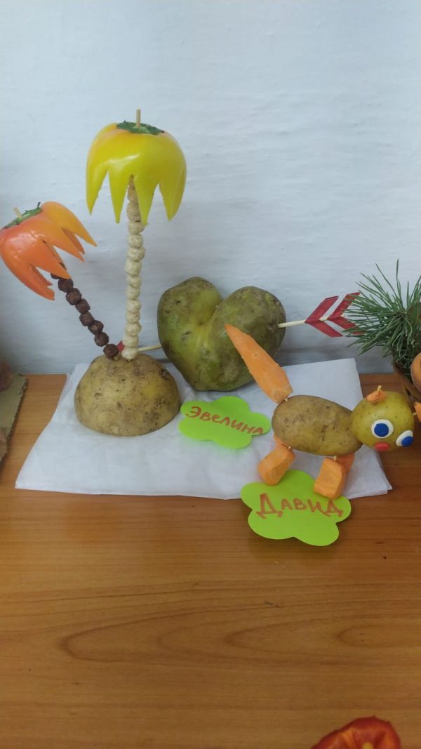 В рамках Недели эстетической грамотности «Путешествие в мир мастеров» в 1-4 классах была организована выставка из овощей и фруктов "Волшебница осень". Цель: развитие художестве…