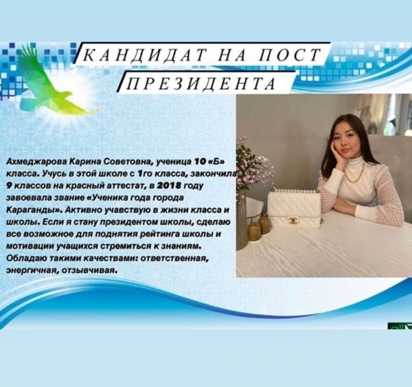 С 15 по 25 сентября во всех организациях образования города Караганды начинается голосование за кандидатов, подавших заявления на пост президента организации самоуправления.