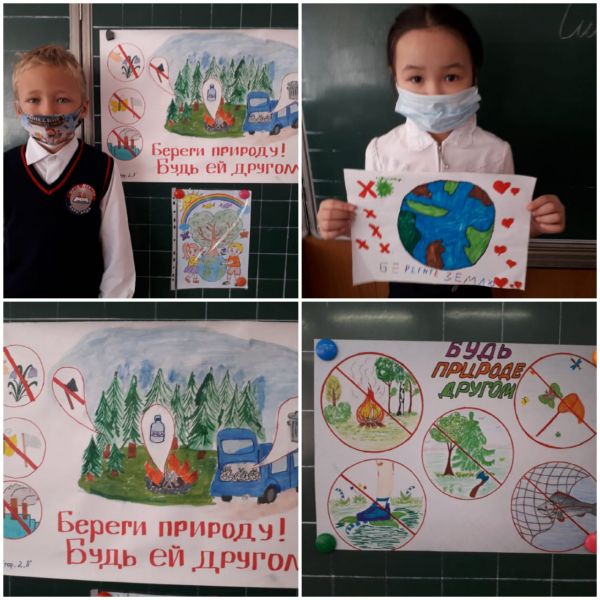 Ученики 2 А класса приняли активное участие в выставке рисунков и плакатов на тему " Будь природе другом!"