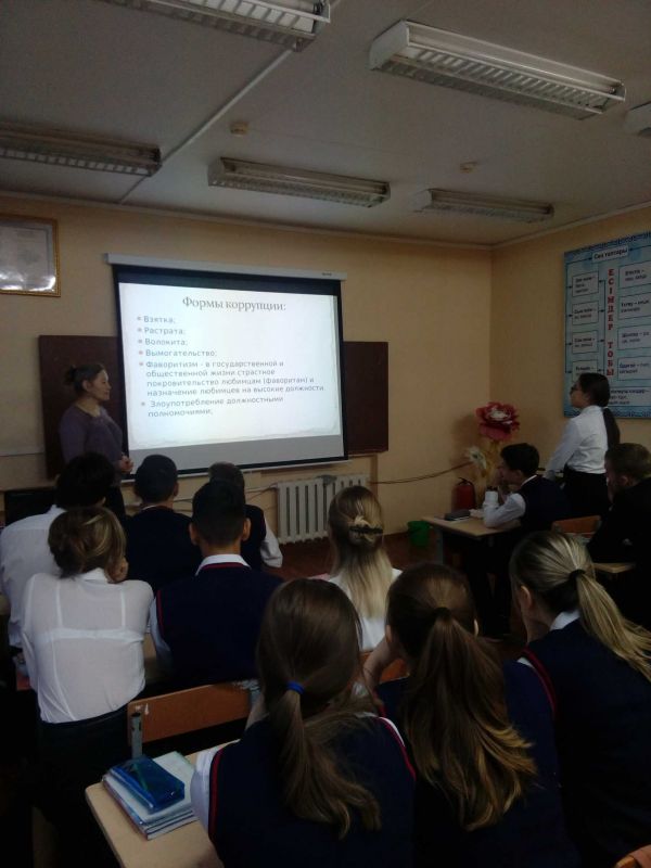 06 қараша күні «Жемқорлыққа жол бермейміз!» атты 5-11 сыныптар арасында жалпыреспубликалықбірыңғай сынып сағаттары өткізілді.