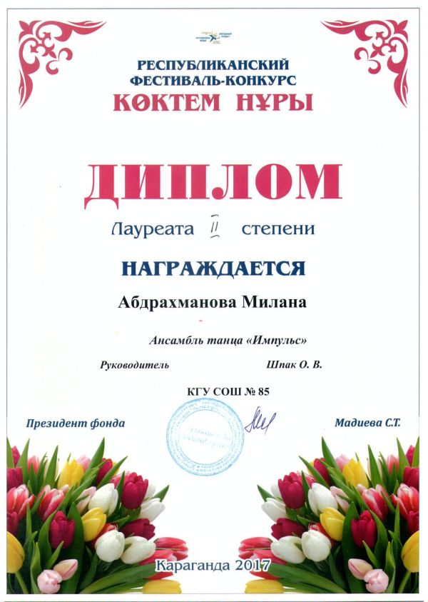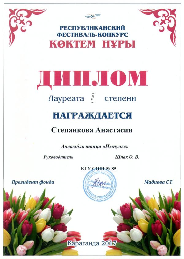 Поздравляем Ансамбль танца «Импульс» и руководителя Шпак О.В.. Ансамбль танца «Импульс» был награжден дипломами II степени за участие в республиканском…