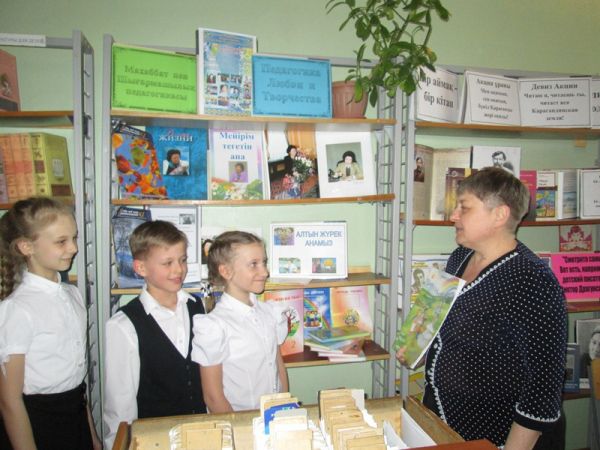 Мектеп кітапханасында «Махаббатпен жүректер жылытылған» кітап көрмесі ашылды. Көрмені мектеп кітапха…
