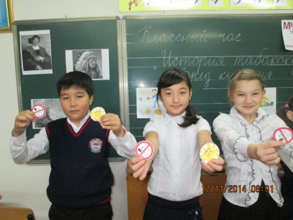 17.11.2014ж . 8В сыныпта «Шылым шегудің тарихы» атты сынып сағаты өтті. Сынып сағатында темекінің зияны, одан туатын ауру түрлері, оның құрамындағы зи…