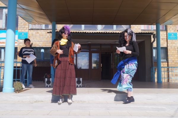 Работники школьной библиотеки пришли в гости в отряд «Балдырған» в пришкольном оздоровительном лагере «Ромашка» (воспитатели Оспанкулова Г.С., Жанай А., Басигарае…