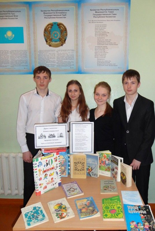 Мектеп кітапханасының қызметкерлері мектептің медициналық қызметкері Р.С.Мироненкомен бірге оқушылардың дұрыс тамақтануына арналған аймақтық онкүндікке белсене қатысты.