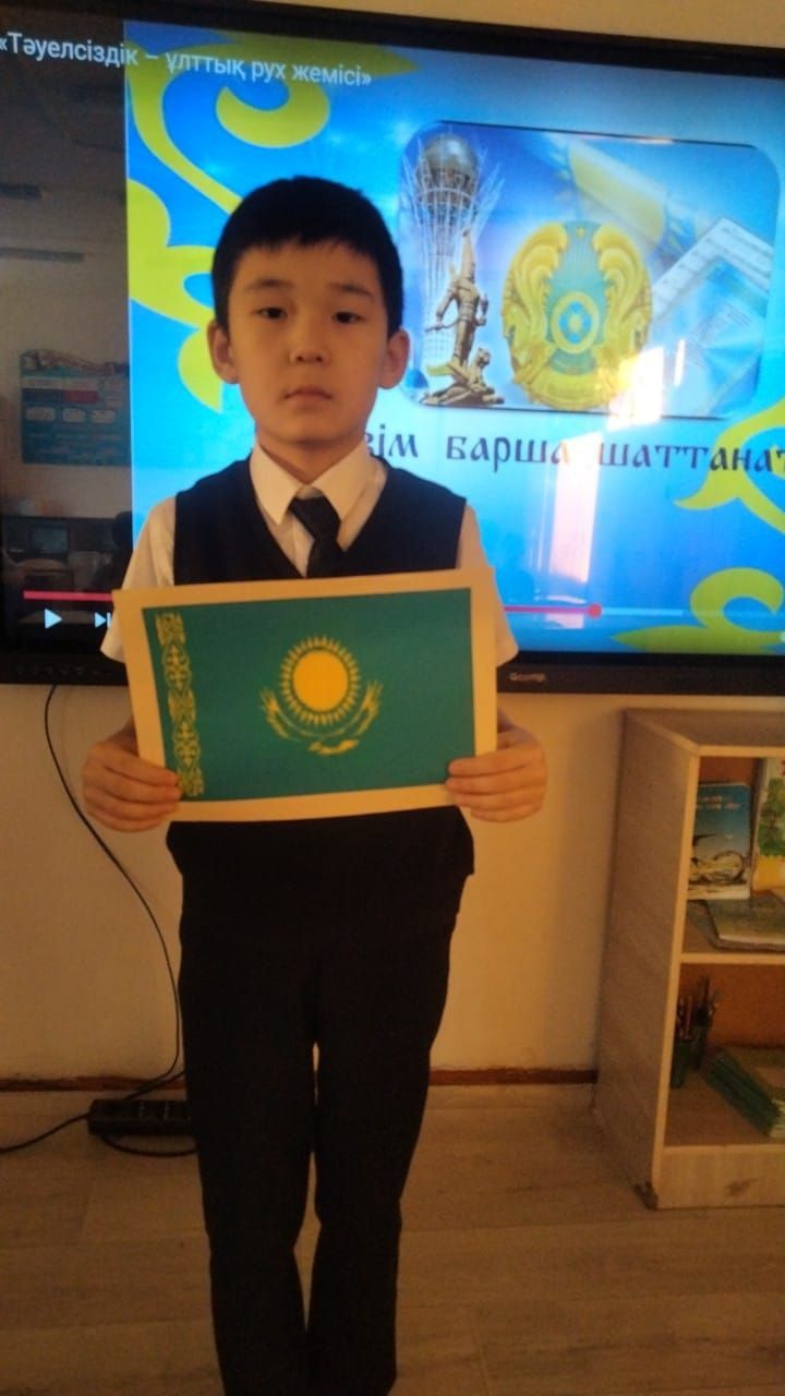 "Біртұтас тәрбие" бағдарламасы бойынша Қазақстан Республикасының Тәуелсіздік күніне орай 3”Ә” сыныбында "ҚР Мемлекеттік рәміздері" тақырыбы бойынша сынып сағаты өт…