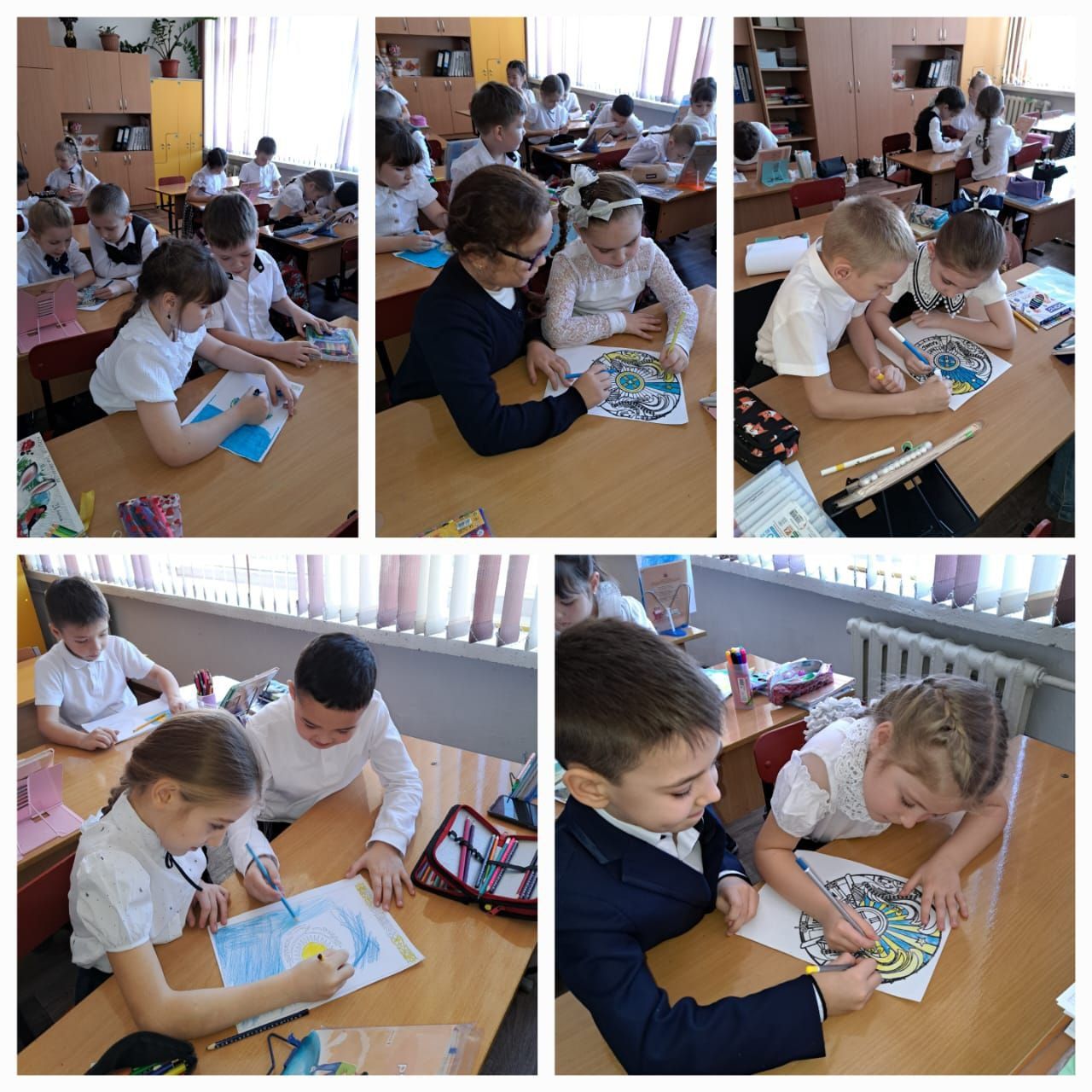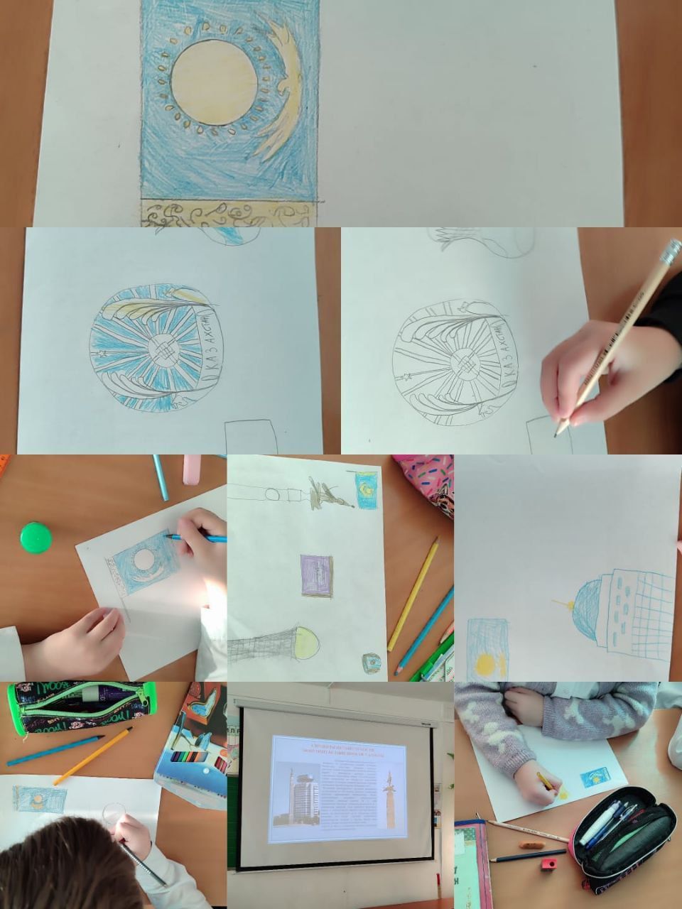 Сегодня учащиеся 4В класса выполняли рисунки о символах РК #біртұтастәрбиe