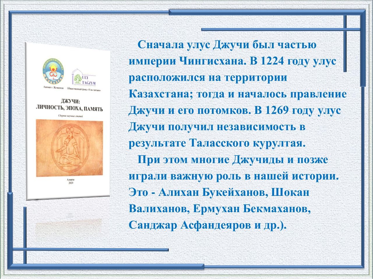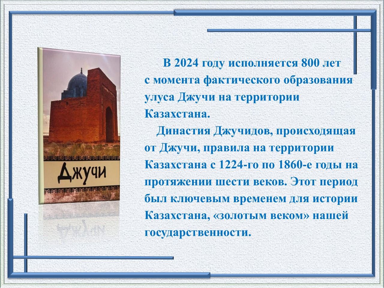 В 2024 году исполняется 800 лет со дня образования Улуса Джучи, который находился у истоков Казахского государства. Эта знаковая дата имеет большое значение и показывает мног…