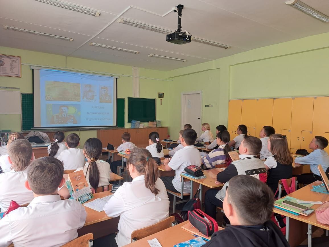 23 мая в 4 "В" классе прошёл единый классный час на тему: "С.Нұрмағамбетов - батыр рождённый для народа"
