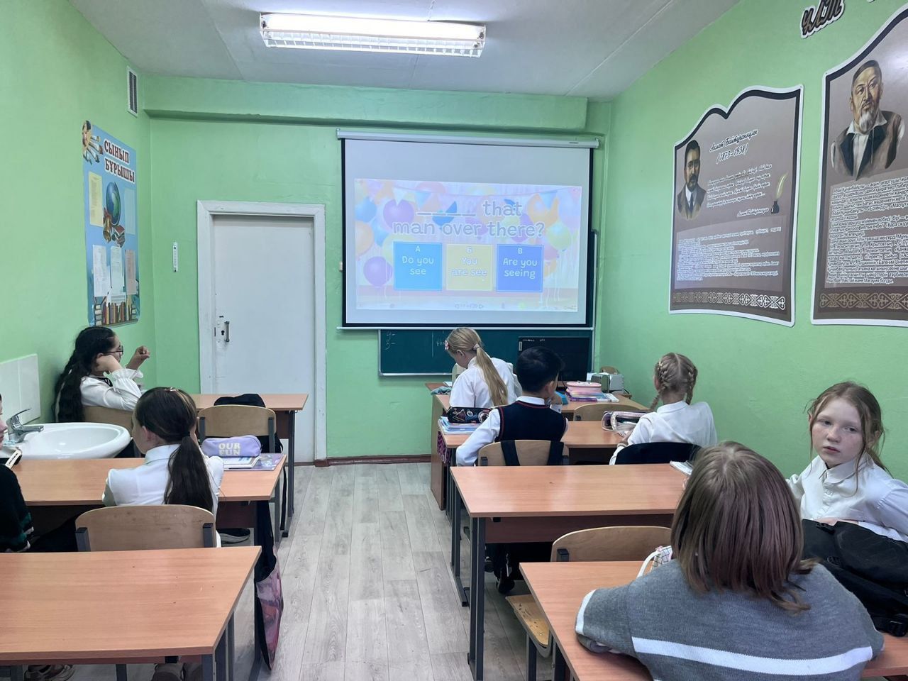 Урок в 5 классах с применением интерактивных задании на тему Present Continuous (употребление времени)