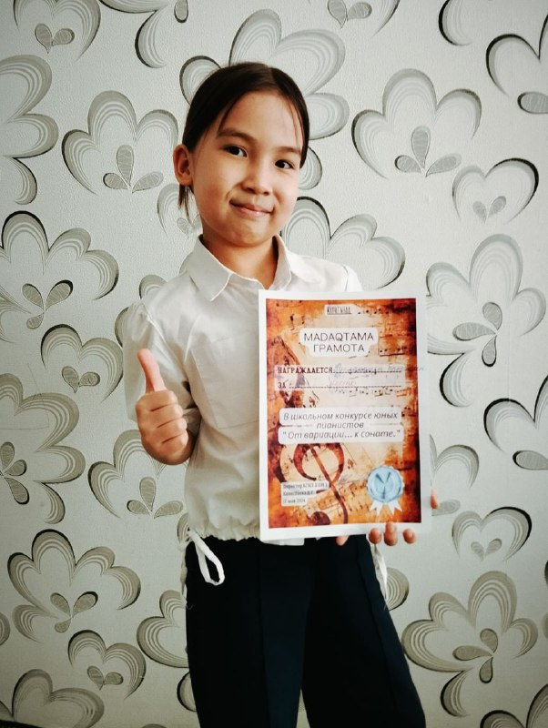 В музыкальной школе состоялся конкурс юных пианистов "От вариации к сонате". Ученица 2 "Ә" класса Русланқызы Еркежан заняла 1 место. Поздравляем!