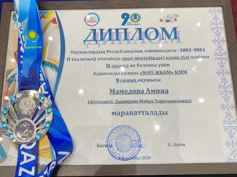 03.05.2024ж. "Жеңімпаздар шеруі" атты оқушылардың Республикалық олимпиадасының қалалық кезеңінің жеңімпаздарын марапаттау рәсімі өтті. Орыс мектебіндегі қазақ тілі пәнінен II орынға ие…