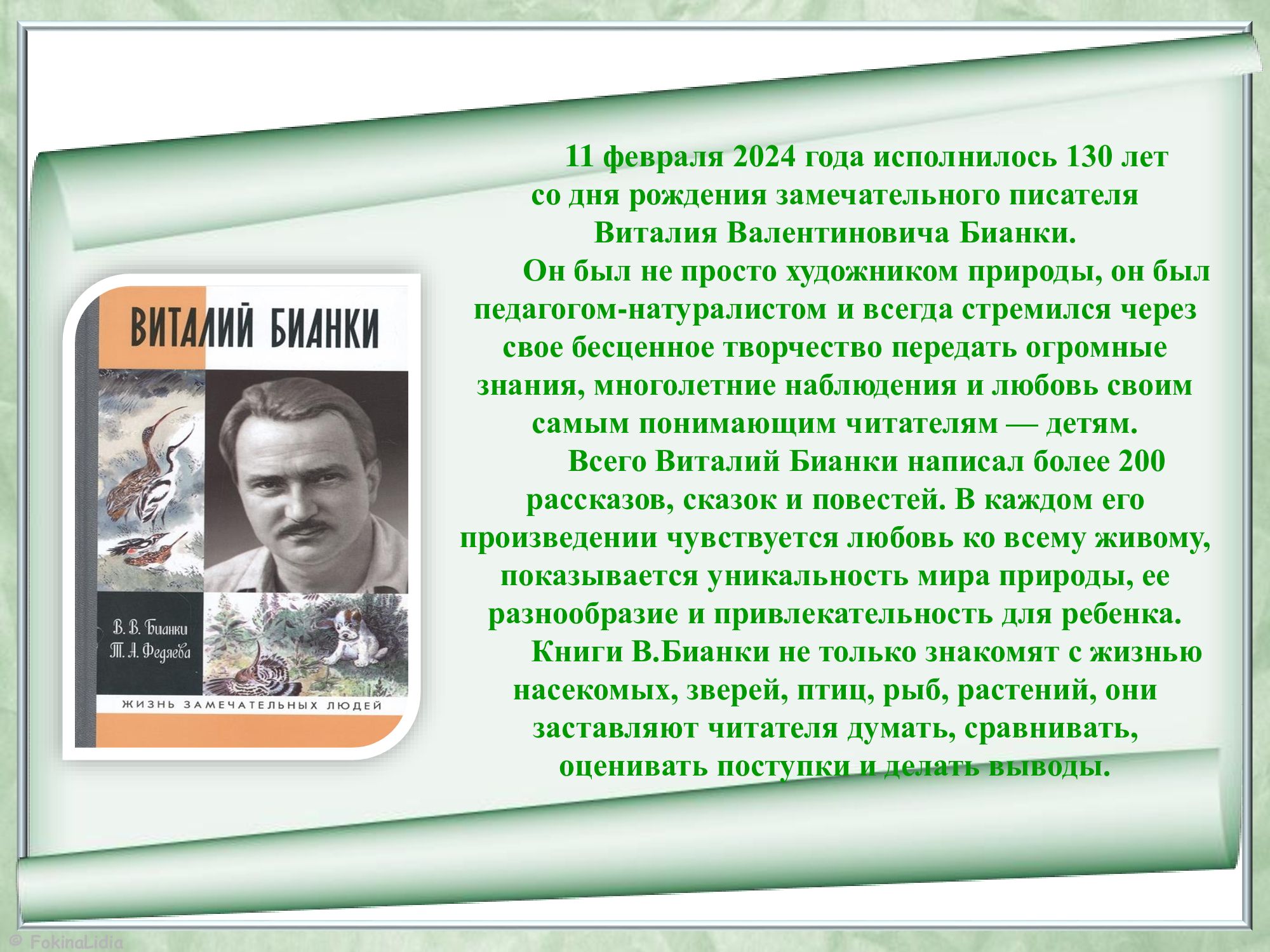 Жануарлар мен құстар әлемі В.Бианкидің туғанына 130 жыл