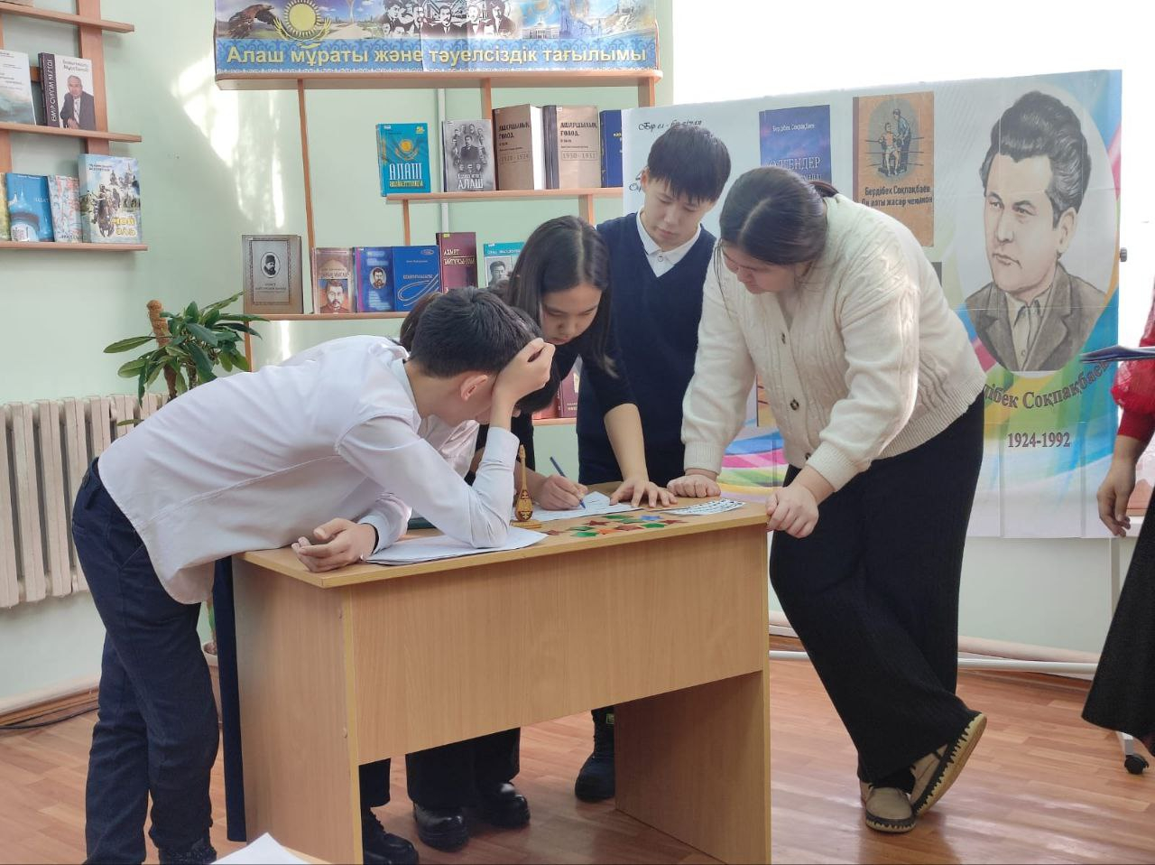 26 қаңтар күні, 8 "Ә" сынып оқушылары, " Қарағанды қаласының орталықтандырылған кітапханалар жүйесі" ұйымдастыруымен "Бір ел -бір кітап"акциясы аясында Бердібек Соқпақб…