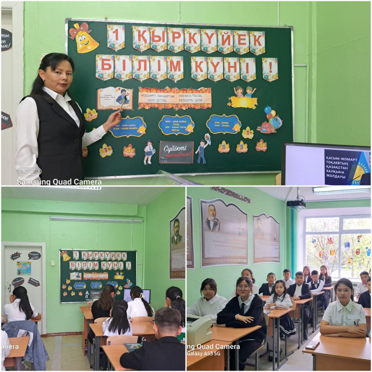 1 сентября в 6"Г" классе была проведена классный час на тему "Справедливый Казахстан: качественное образование,честное поколение успешная нация"