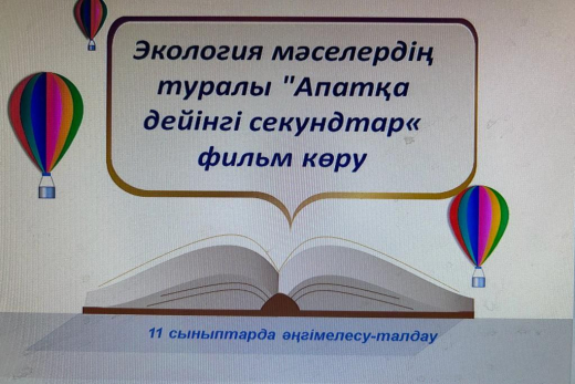 “Ғылым және технология” атты жаратылыстану-ғылыми апталығының аясында Экология мәселердің туралы "Апатқа дейінгі секундтар" 11 сыныптарда фильмін көріп, әңгімелесу-талдау жұмыс…