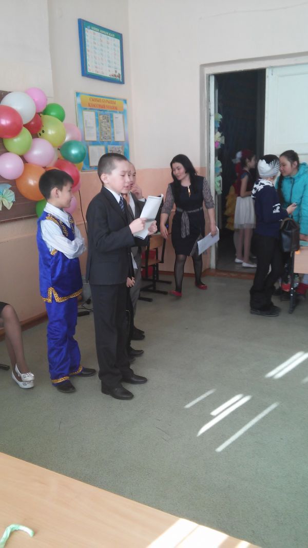 Халықаралық әйелдер күніне орай Багдат Харахат жетекшілік еткен 4 «В» сыныбында «Аяулы анашым» атты тәрбие сағаты өтті.Тәрбие сағаты аналар көңілінен шықты.