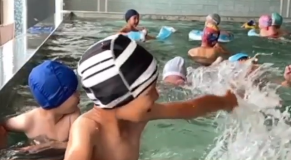 "Ақ желкен" жазғы сауықтыру лагерінің балалары "Дельфин" бассейніне барып, суға түсіп, суда ойналатын ойындар ойнап демалып қайтты.