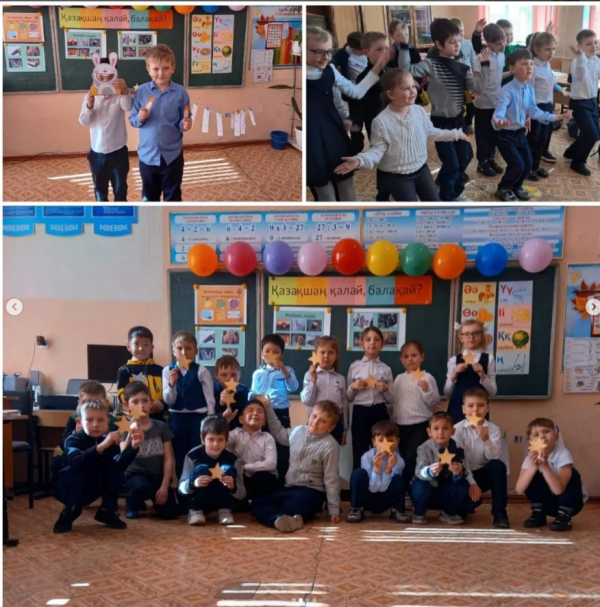 Қазақ тілі апталығының жоспары бойынша 1"Б" сыныбында «Қазақшаң қалай, балақай?» атты викториналық ойындар өтті. Абикеева А.Ш.