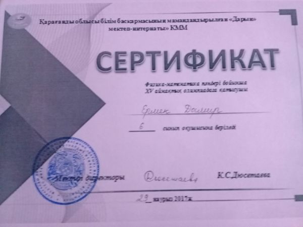 Мектебіміздің 9-сынып оқушылары Кунекбаев Дамир, Аман Бақытбек, Зарубаева Еркеназ физика және информатика пәндерінен өткізілген олимпиадаға қатысып жүлделі орындардан көрінгенімен құттықтаймыз!!!&nb…