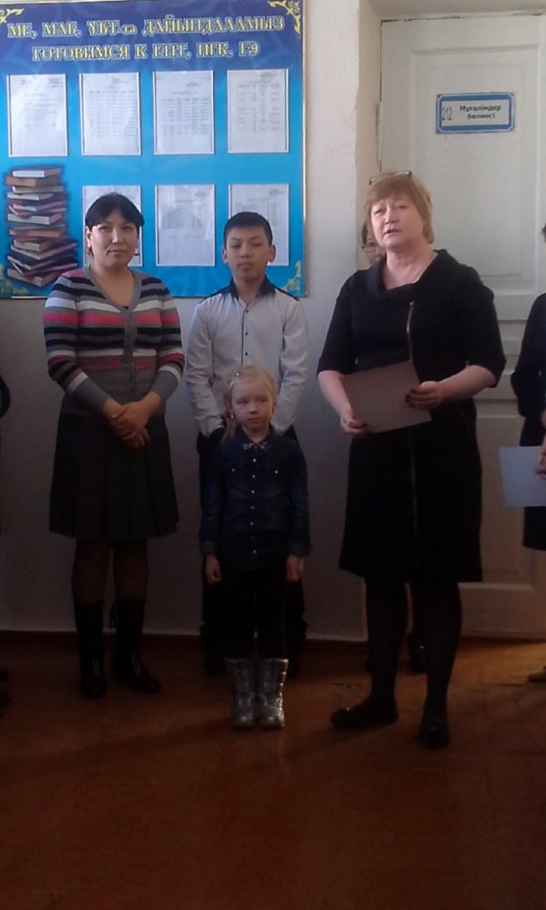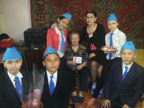 22.04.2015 ж мектепке ардагер Ошанаева Рымкеш апайды арнай түрде шақырып, Ұлы Жеңістің 70 жылдығына орай берліген медаль табысталды.