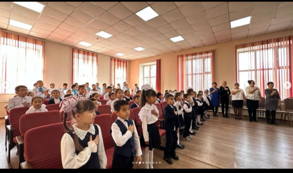 Республика күніне орай 2 сыныптарды «Жас Қыран» ұйымына салтанатты түрде қабылдау. Торжественный прием ко дню Республики 2 классов в детско юношескую организацию &laqu…