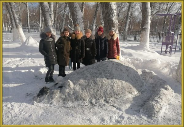 Жаңа жыл мерекесіне орай мектебіміздің алаңына 6а сынып оқушылары ата-аналардың ұйымдастыруымен қардан мүсін жасады.