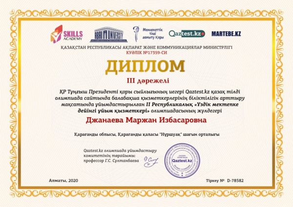 Қазақстан Республикасының Тәуелсіздік күнінің 29 жылдығына арналған «№59ЖББОМ» КММ мектеп жанындағы «Нұршуақ» шағын орталығының педагогтары онлайн-сабақтар өткізд…