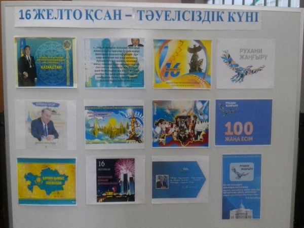 Қазақстан Республикасының Тәуелсіздік күніне орай мектебімізде стенд және "Тұғыры биік Тәуелсіздік!" тақырыбында суреттер көрмесі "егеменді елім менің - Қазақстан!" тақырыб…