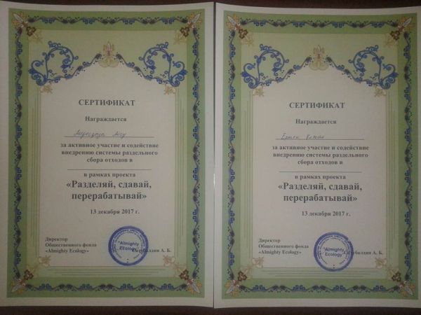 Мектебімізде "Almighty Ecology" қоғамдық қоры ұйымдастыруымен "разделяй, сдавай, перерабатывай" атты жобамен жұмыс жасалуда.Жобаға белсенді қатысқан оқушылармен сыныптар 13 -і же…