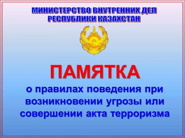 «Терроризм актінің қауіпі туындаған немесе терроризм акті жасалған жағдайдағы әрекеттер туралы жадынама»