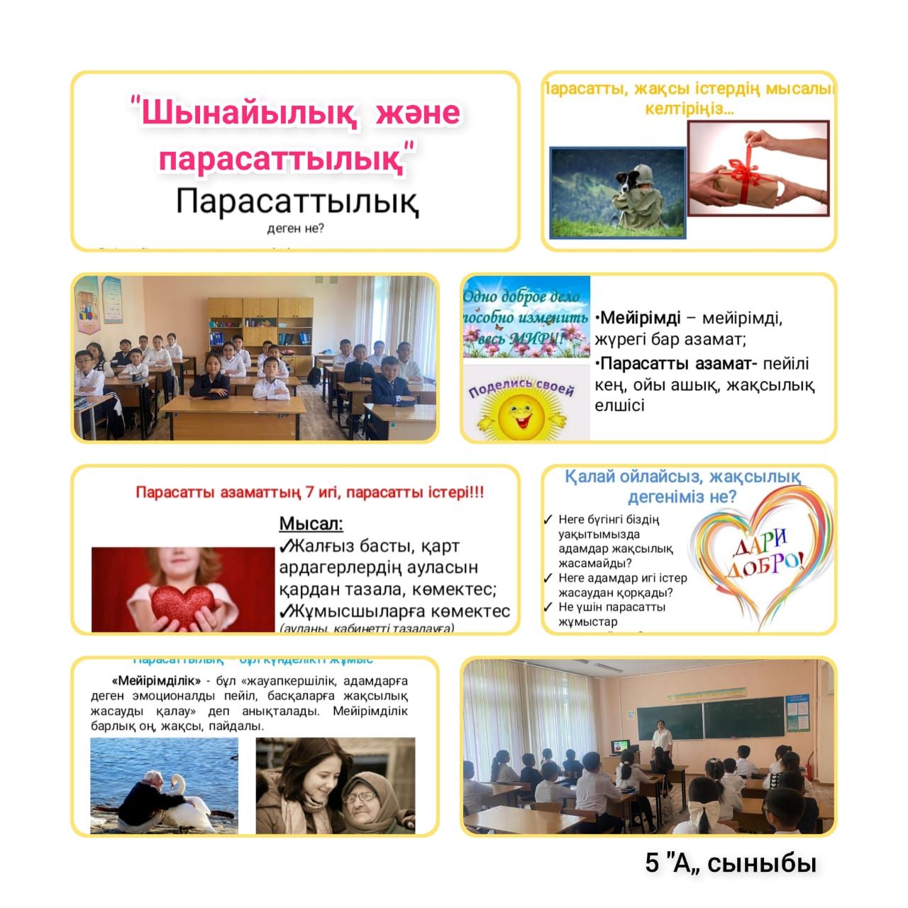 5"Ә"сыныбында "Шынайылық пен парасаттылық - менің өмірлік ұстанымым" тақырыбында Адалдық сағаты өтті.
