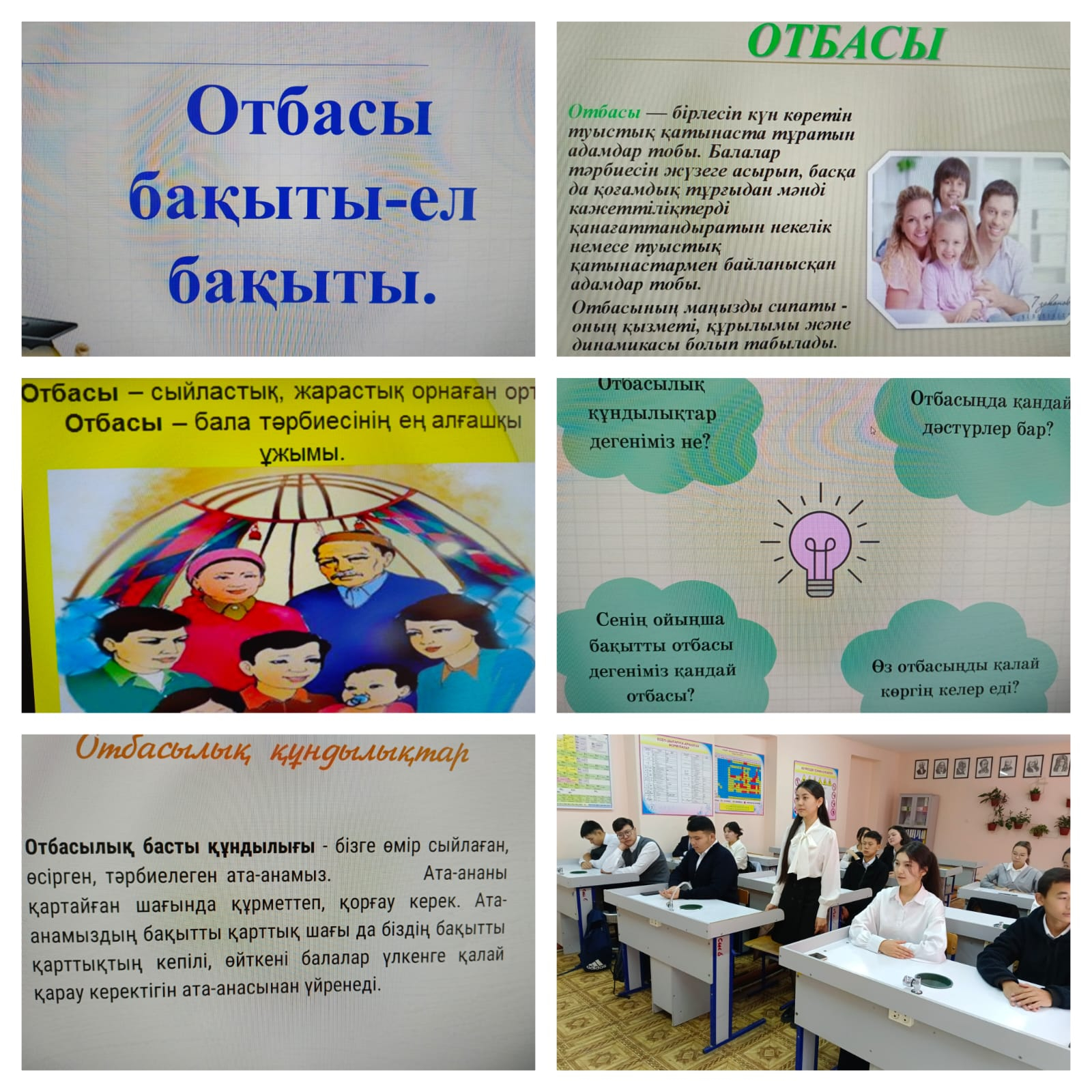 2023 жылдың 11 қыркүйегінде 10"А" сынып оқушыларымен "Отбасы бақыты- ел бақыты"тақырыбында сынып сағаты өтті.