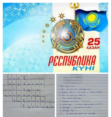 25 қазан- Республика күні ұлттық мерекесіне орай 7"Ә" сынып оқушылары "Қыран елім- Қазақстаным" тақырыбында патриоттық шығармаларды оқыды.