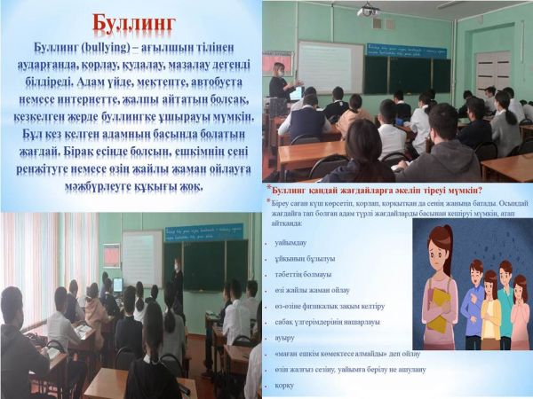 08.02.күні Аутодеструктивті жүріс-тұрыстың алдын алу мақсатында 9-сынып оқушылармен «Буллинг» тақырыбында психологиялық сағат өтті