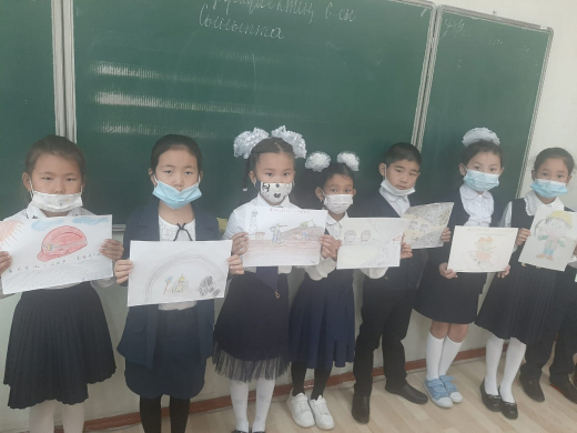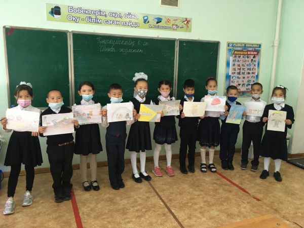2 "А" сынып оқушылары Кеншілер күніне орай "Кеншілер еңбегі" тақырыбына сурет салды.