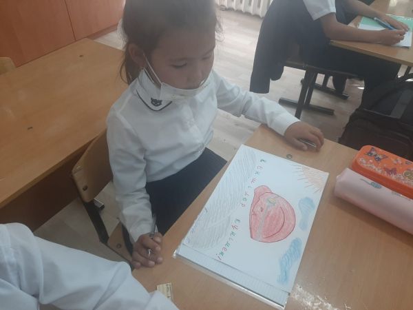 2 "Ә” сынып оқушылары Кеншілер күніне орай "Кеншілер еңбегі" тақырыбына сурет салды.