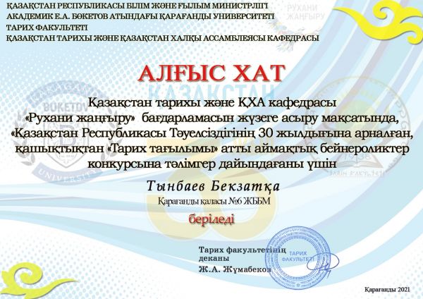 Е.А. Бөкетов атындағы Қарағанды университеті тарих факультеті, Қазақстан тарихы және ҚХА кафедрасы 2021 жылдың 28 қазанында «Рухани жаңғыру» бағдарламасын жүзеге асыру мақсатында, «…
