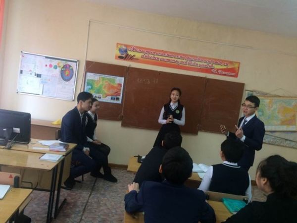 13 наурыз күні 9 «А» сынып оқушыларымен «Бейіміне қарай мамандық таңдау» тақырыбында психологиялық тренинг-сабақ жүргізілді.