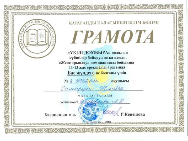 "Үкілі домбыра" қалалық күйшілер байқауына мектебіміздің жас домбырашылары қатысып, жүлделі орындарға ие болды. "Ансамбль" номинациясы бойынша ІІІ орынға, "Жеке орындау"…