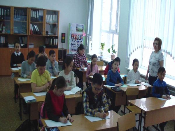 Көктемгі демалыс кезінде 4 "а" сынып оқушылары сынып жетекшісі Б.М.Ахметовамен ОЖСБ-ға дайындық үстінде.