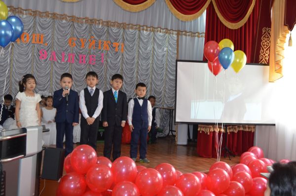 В СОШ №6 был проведен утренник среди учащихся 1 «А» и 1 «Ә» класса «Қош сүйікті, Әліппе!».Ученики показали свои знания и умения.