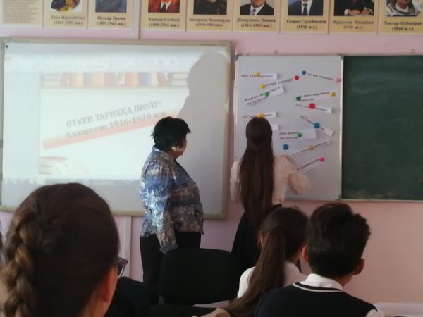 Әдістемелік онкүндік аясында тарих пәні мұғалімі Р.А.Амированың 9 «Ә» сыныбында өткізген "Қырғыз (Қазақ) АКСР-нің құрылуы" атты ашық сабағынан көрініс