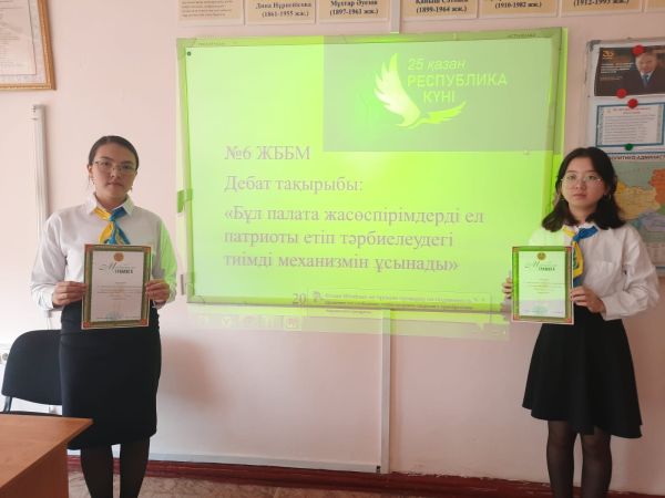 25 қазан Республика күні ұлттық мерекесіне орай "Мен өз елімнің азаматымын" тақырыбы аясында мектепішілік дебат ойыны өтті. Дебаттың мақсаты:Белгілі бір фактілерді зерттеуге,болжауға,жүйел…