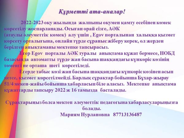 Құрметті болашақ бірінші сынып оқушыларының ата-аналары!